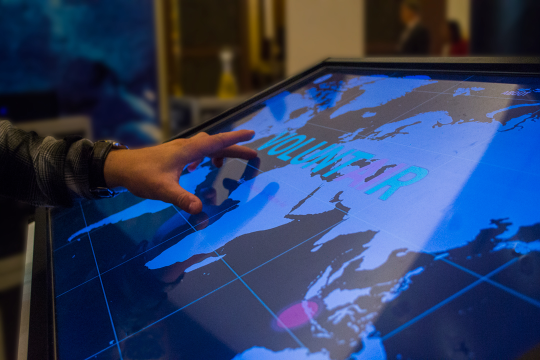 Inspired by the concept of ‘Guerilla Futures’ (Candy, 2010), there were hidden artefacts across the exhibition. These hidden artefacts mirrored mundane objects that could be found at the event, such as business cards, newspapers, and posters, but that when looked at closer, they reflected futures scenarios. For instance, business cards had slightly different look-and-feel that reflected future roles the membership might have over the next years like ‘Cyberwarfare First Responder’ or ‘Crowdsourcing and Peer-to-Peer Mobilisation Officer’. Another example of these artefacts was ‘The New World Times’, a newspaper with stories written and illustrated by volunteers from the research phase. The purpose of creating these artefacts and spreading them across the venue was to encourage spontaneous interactions and discussions about the future with attendees in a light, yet creative way.